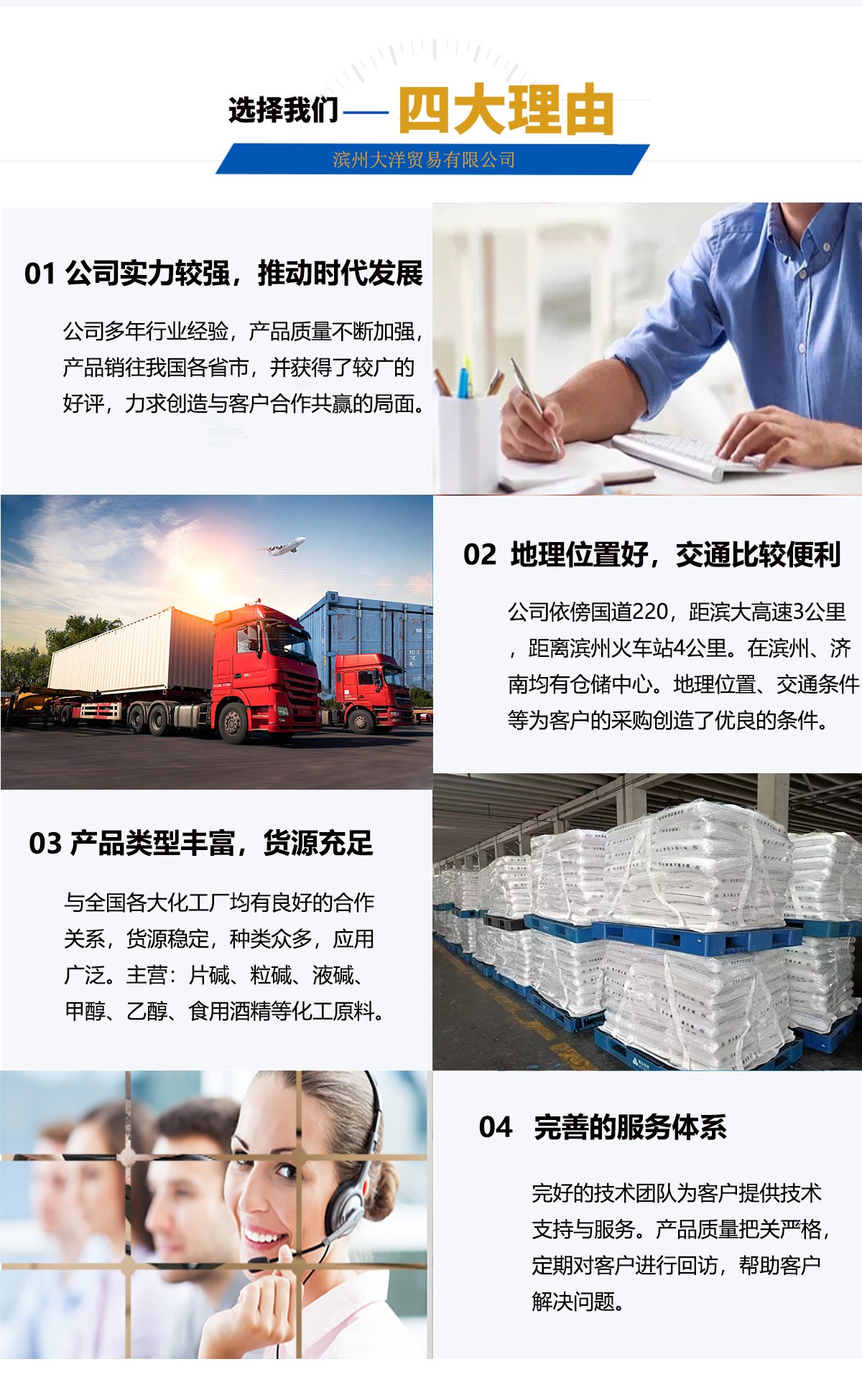 濱州大洋貿(mào)易有限公司位于紡織之都濱州市,是一家專業(yè)經(jīng)營(yíng)各種化工原料的專業(yè)公司,與全國(guó)各大化工廠均有良好的合作關(guān)系,貨源穩(wěn)定、價(jià)格低廉。公司依傍國(guó)道220,距濱大高速3公里,距離濱州火車站4公里。在濱州、濟(jì)南均有倉(cāng)儲(chǔ)中心。地理位置、交通條件。為客戶的采購(gòu)創(chuàng)造了優(yōu)良的條件。